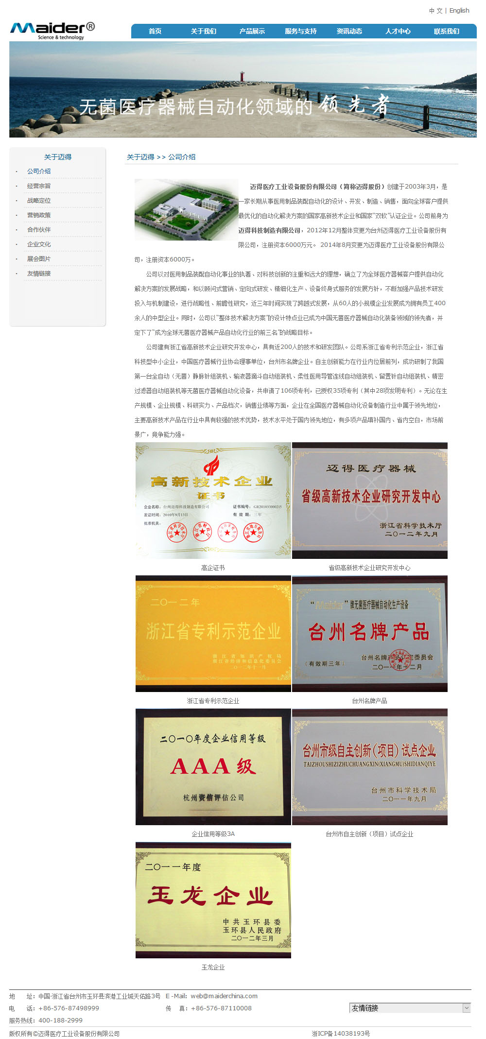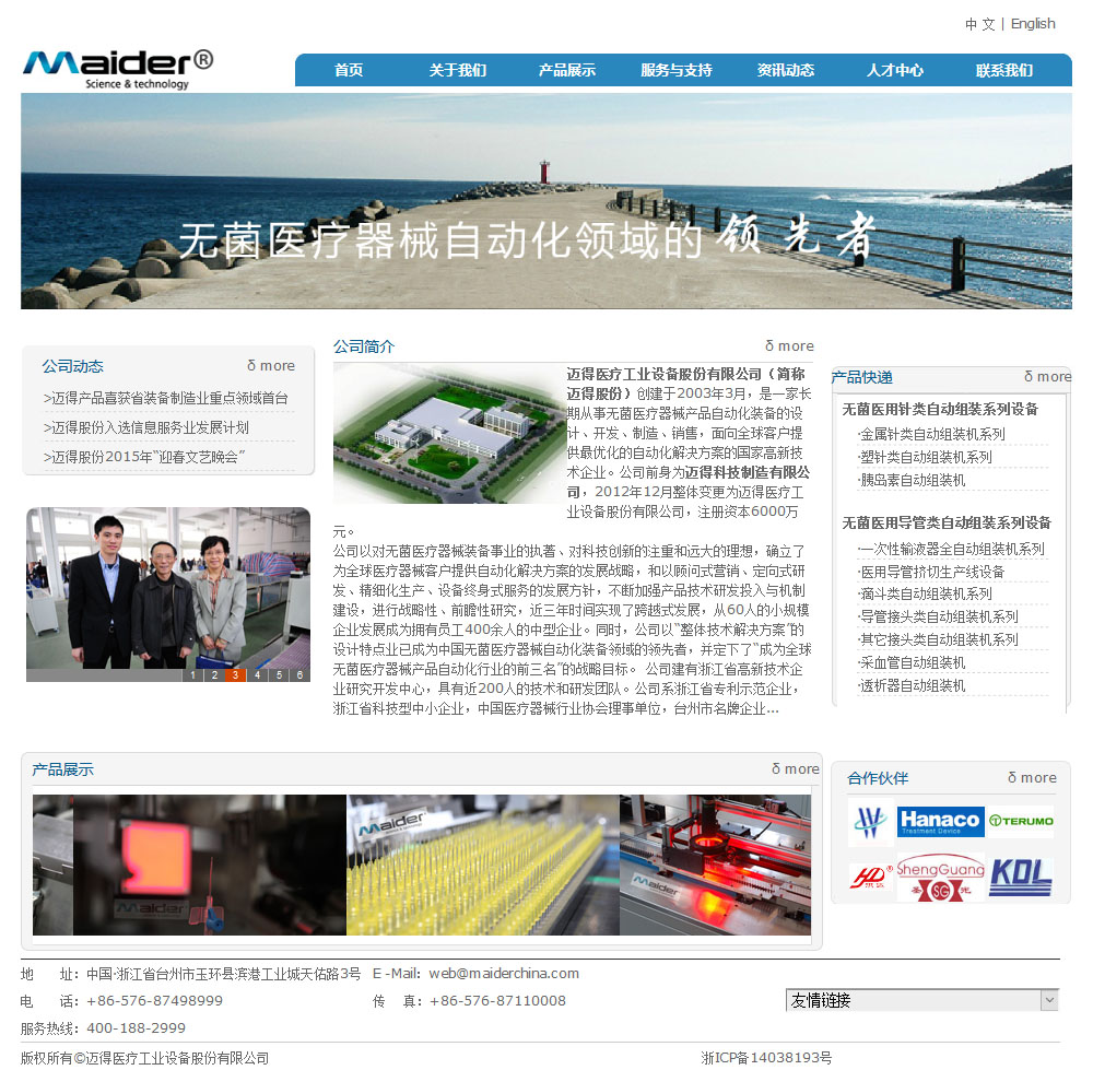 迈得医疗工业设备股份有限公司(简称迈得股份)创建于2003年3月,是一家长期从事医用制品装配自动化的设计、开发、制造、销售,面向全球客户提供优化的自动化解决方案的国家高新技术企业和国家“双软”认证企业。