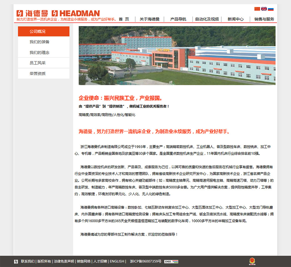 浙江海德曼机床制造有限公司成立于1993年,主要生产:数控机床、工业机器人、普及型数控车床、数控铣床、专机等,产品畅销全国各地及欧美亚等30多个国家。11年国内机床行业综合排名前10强。