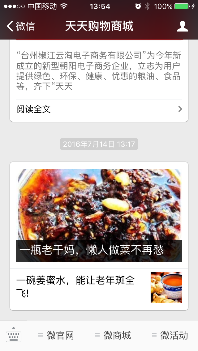 台州椒江云淘电子商务有限公司”为今年新成立的新型朝阳电子商务企业,立志为用户提供绿色、环保、健康、优惠的粮油、食品等。今年4月29日正式营业,作为“台州椒江云淘电子商务有限公司”的线下品牌,线上的天天购也将在6月推出市场,以