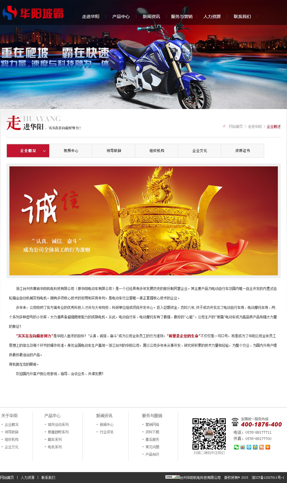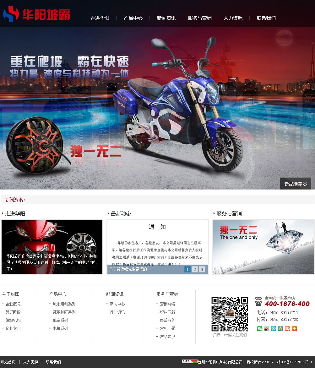 浙江台州市黄岩华阳机电科技有限公司(原华阳电动车有限公司)是一个已经具有多年发展历史的股份制民营企业。其主要产品为电动自行车及自主开发的内置式齿轮箱全自动机械变档电机。拥有多项核心技术的发明和实用专利。是电动车行业里掌握核心技术的企业。