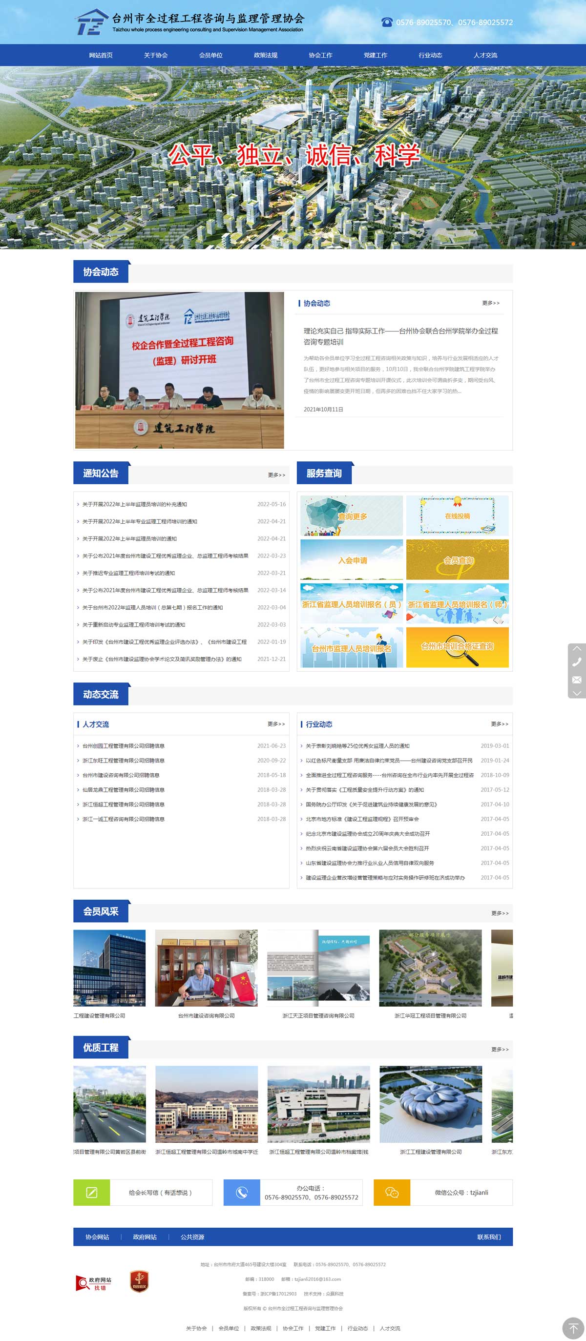 台州市全过程工程咨询与监理管理协会(台州监理协会)开发的是一站式的三站合一:电脑、手机、微信,官网+在线协同系统开发平台,集在线基础展示版块、在线报名及考试版块,以及相关的考试相关数据的统计和分析系统。 台州市全过程工程咨询与监理管理协会(台州监理协会)成立于2016年,是由台州市从事工程监理业务的企业和院校、科研机构自愿组成的非营利性行业社会组织。